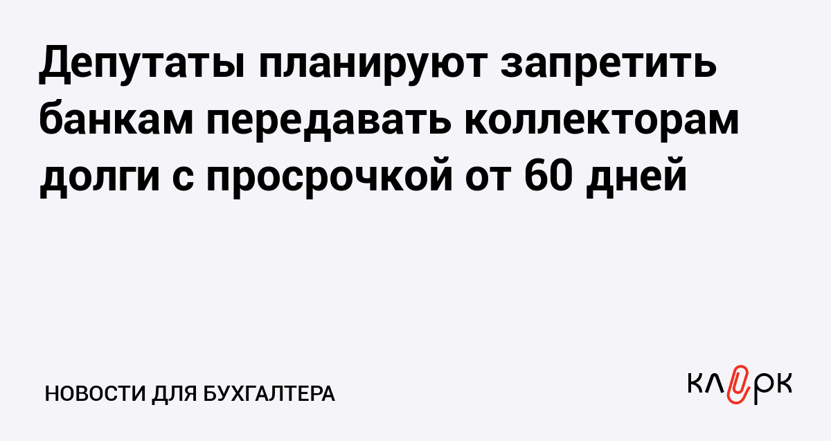 Депутаты планируют запретить банкам передавать коллекторам долги с просрочкой от 60 дней