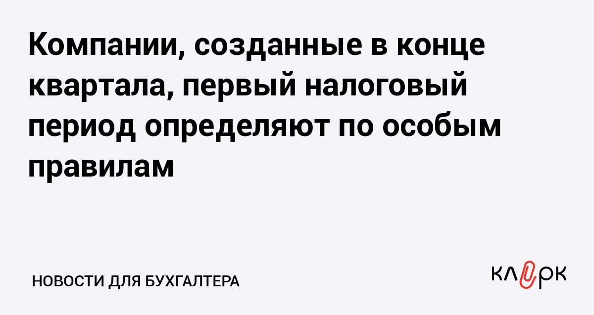 Компании, созданные в конце квартала, первый налоговый период определяют по особым правилам