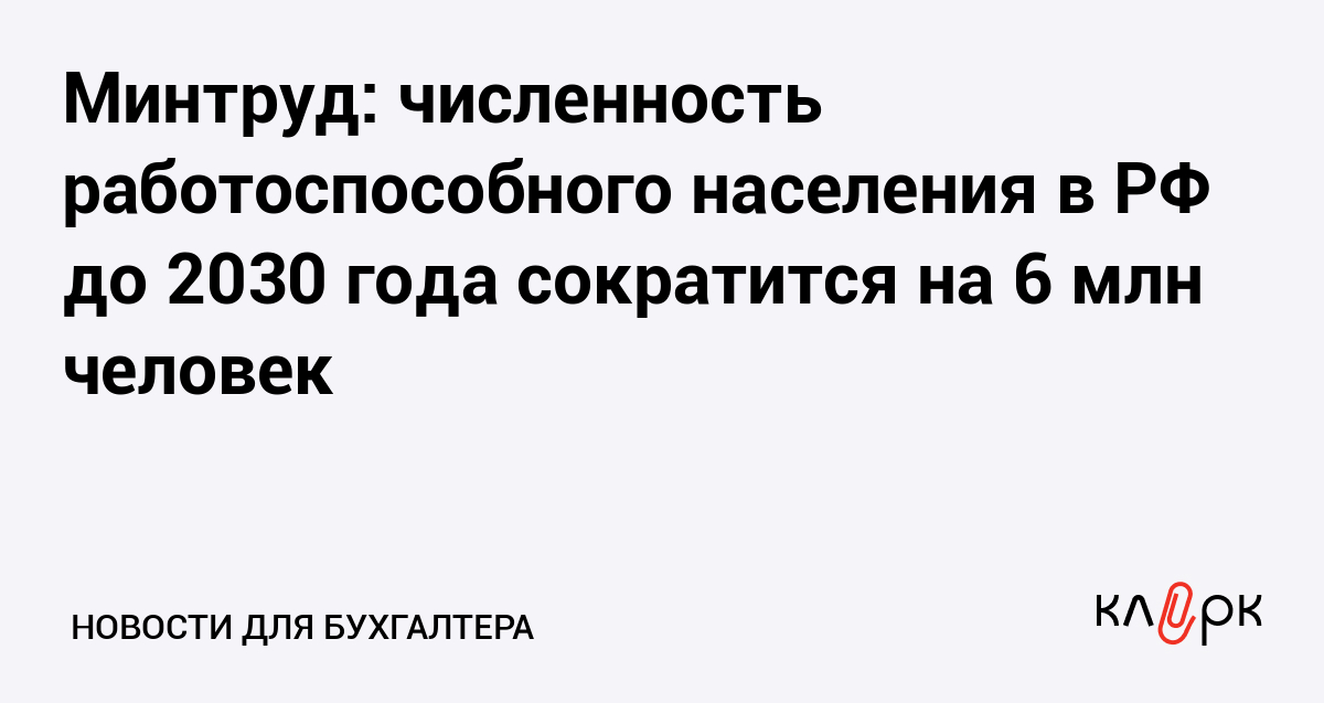 Минтруд: численность работоспособного населения в РФ до 2030 года сократится на 6 млн человек