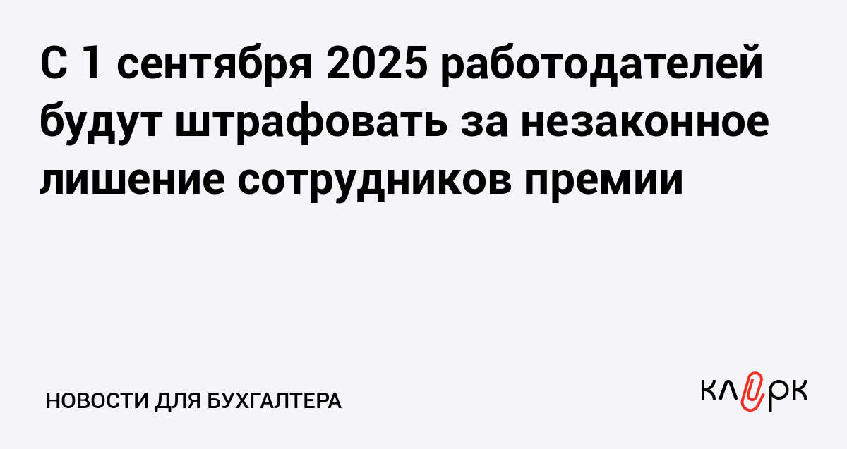 С 1 сентября 2025 работодателей будут штрафовать за незаконное лишение сотрудников премии
