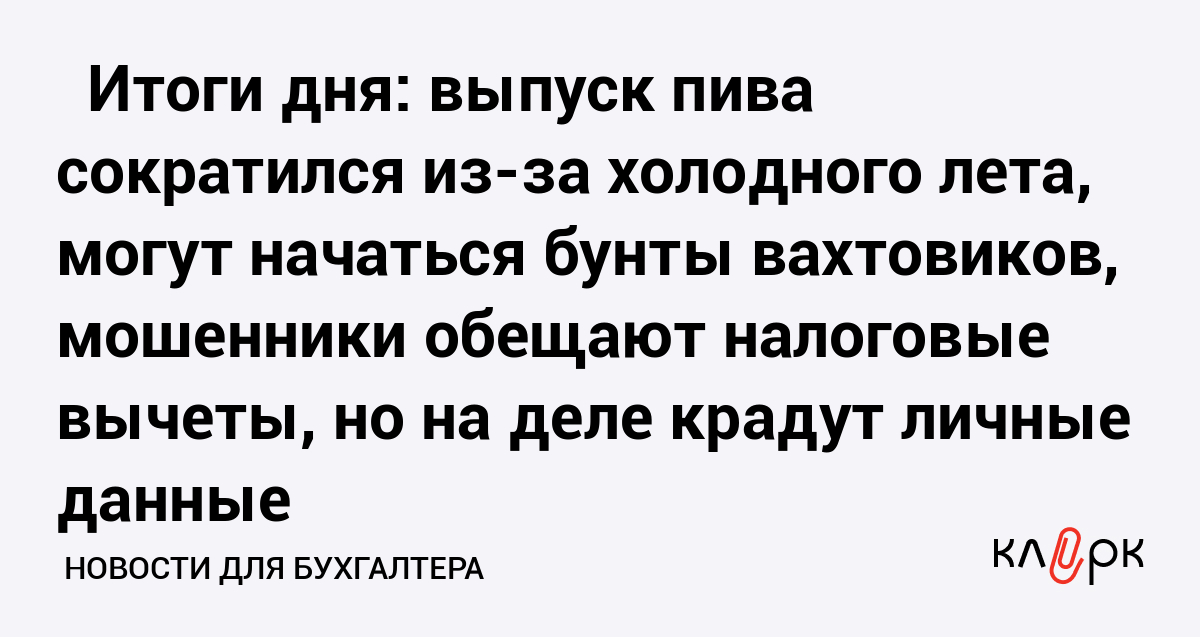 ⚡️ Итоги дня: выпуск пива сократился из-за холодного лета, могут начаться бунты вахтовиков, мошенники обещают налоговые вычеты, но на деле крадут личные данные