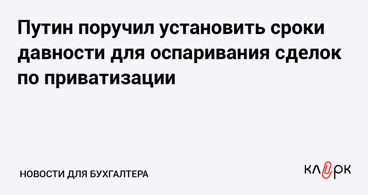 Путин поручил установить сроки давности для оспаривания сделок по приватизации