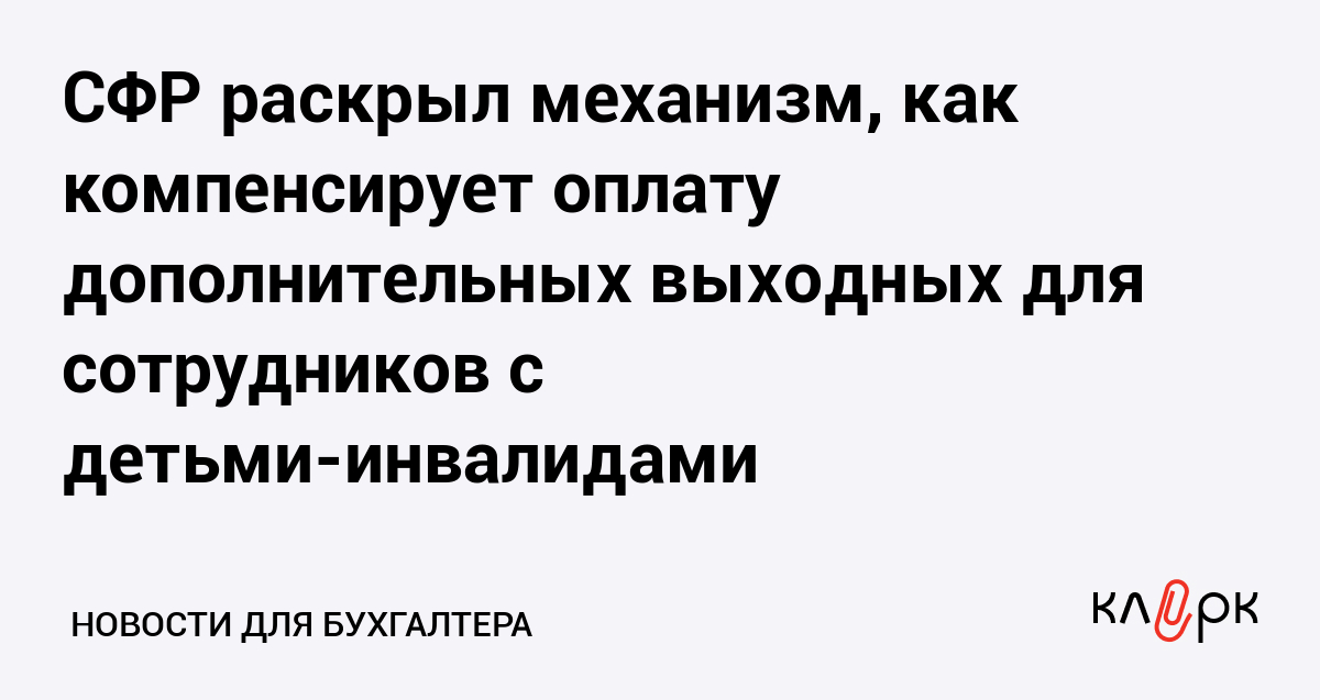 СФР раскрыл механизм, как компенсирует оплату дополнительных выходных для сотрудников с детьми-инвалидами