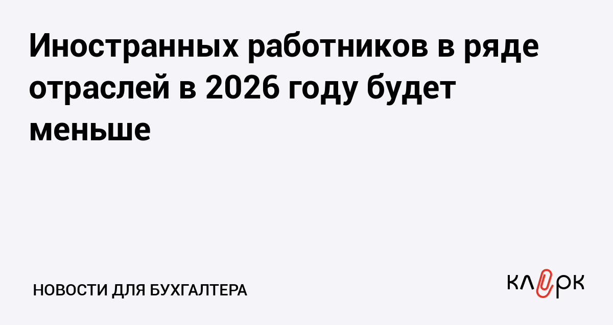 Иностранных работников в ряде отраслей в 2026 году будет меньше