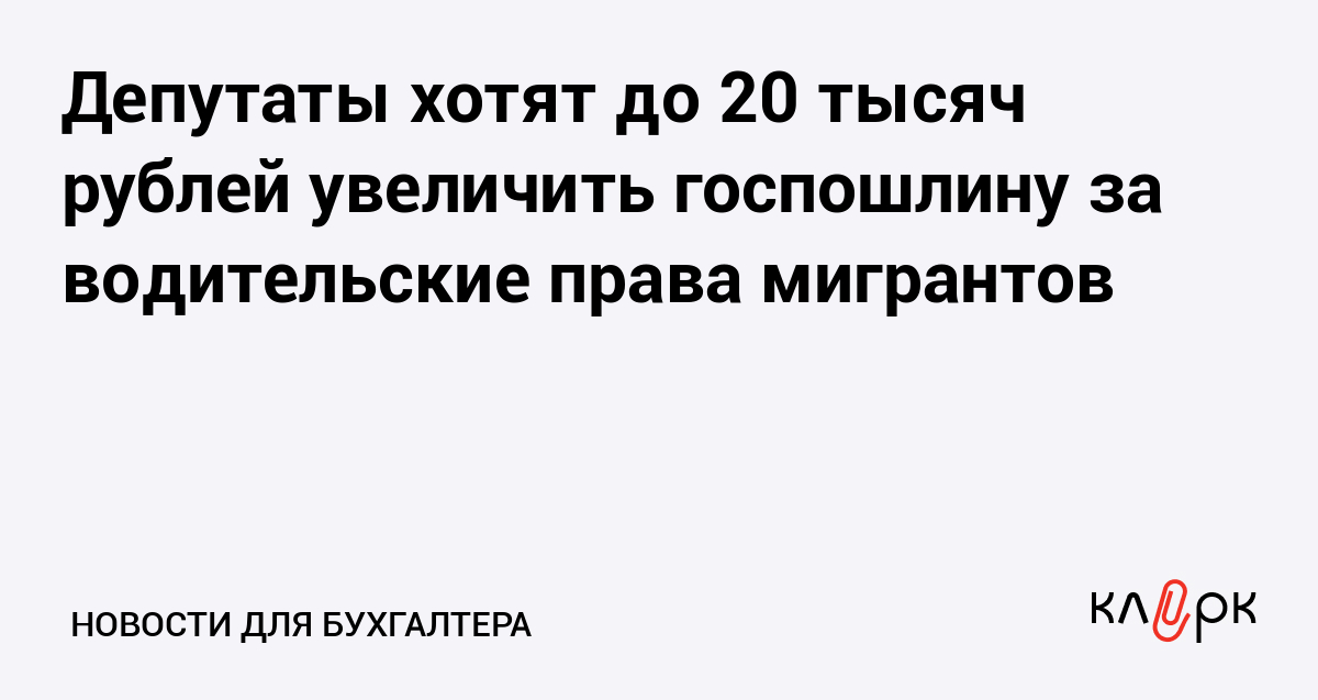 Депутаты хотят до 20 тысяч рублей увеличить госпошлину за водительские права мигрантов