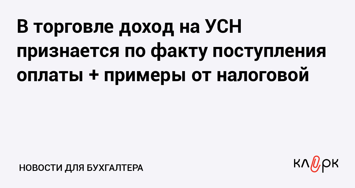 В торговле доход на УСН признается по факту поступления оплаты + примеры от налоговой