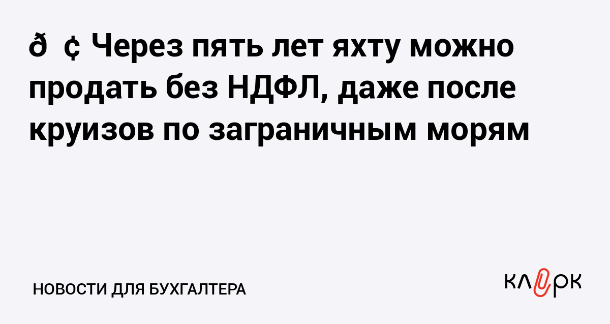 🚢 Через пять лет яхту можно продать без НДФЛ, даже после круизов по заграничным морям