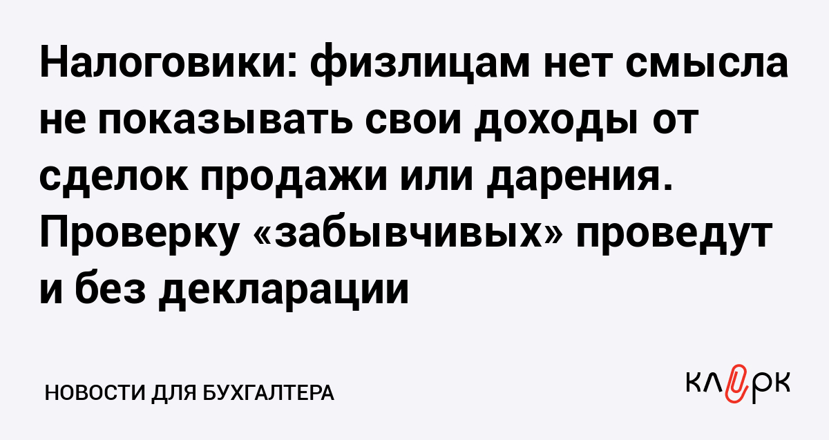 Налоговики: физлицам нет смысла не показывать свои доходы от сделок продажи или дарения. Проверку «забывчивых» проведут и без декларации