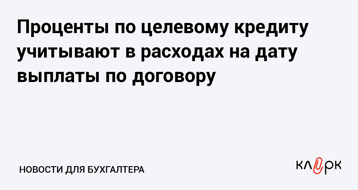 Проценты по целевому кредиту учитывают в расходах на дату выплаты по договору