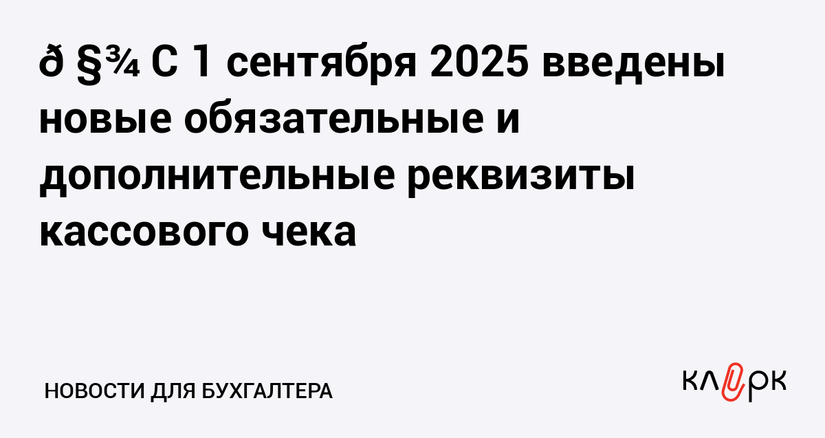 🧾 С 1 сентября 2025 введены новые обязательные и дополнительные реквизиты кассового чека