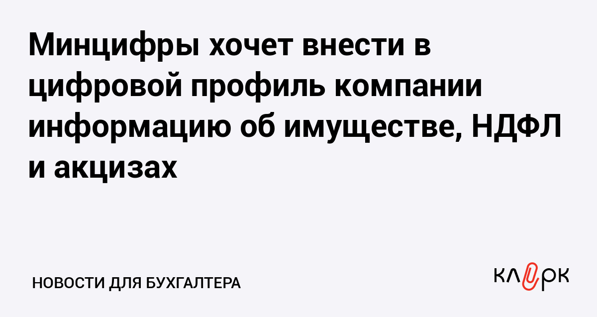 Минцифры хочет внести в цифровой профиль компании информацию об имуществе, НДФЛ и акцизах