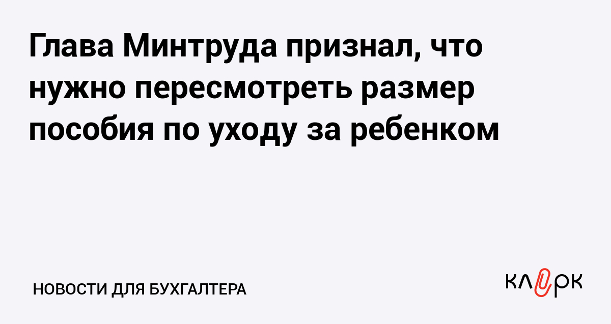 Глава Минтруда признал, что нужно пересмотреть размер пособия по уходу за ребенком