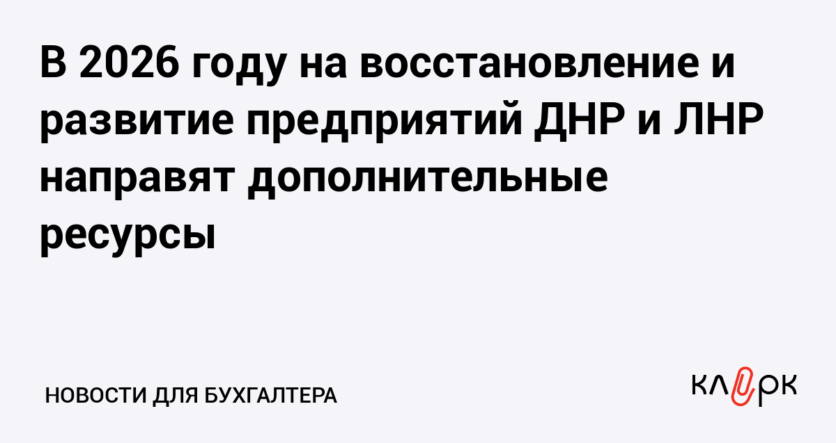В 2026 году на восстановление и развитие предприятий ДНР и ЛНР направят дополнительные ресурсы