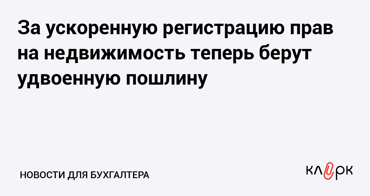 За ускоренную регистрацию прав на недвижимость теперь берут удвоенную пошлину