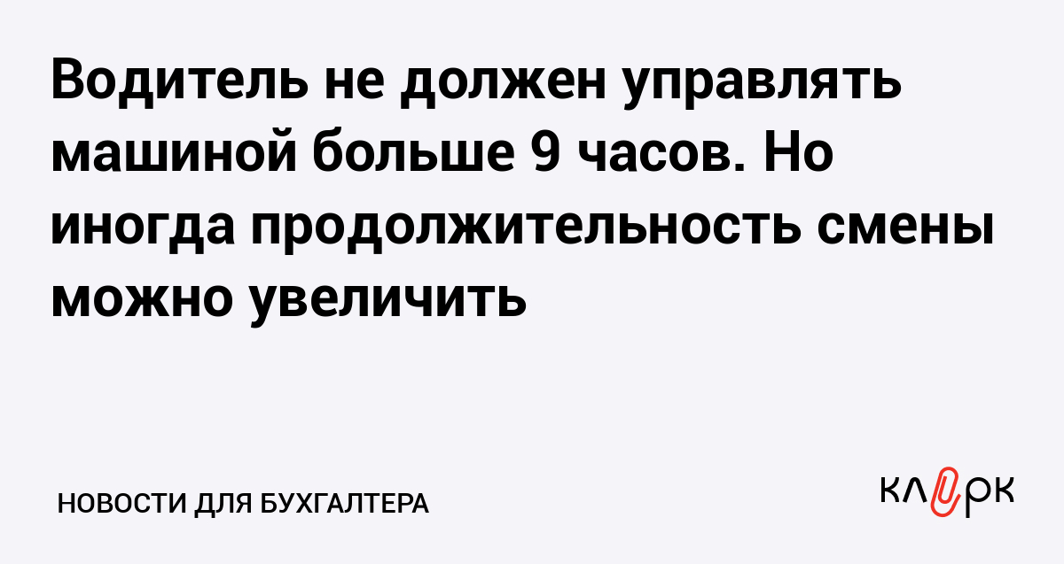 Водитель не должен управлять машиной больше 9 часов. Но иногда продолжительность смены можно увеличить