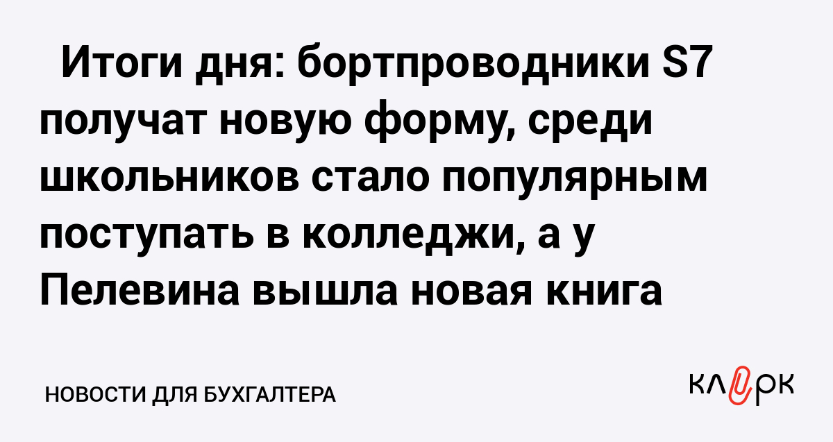 ⚡️ Итоги дня: бортпроводники S7 получат новую форму, среди школьников стало популярным поступать в колледжи, а у Пелевина вышла новая книга