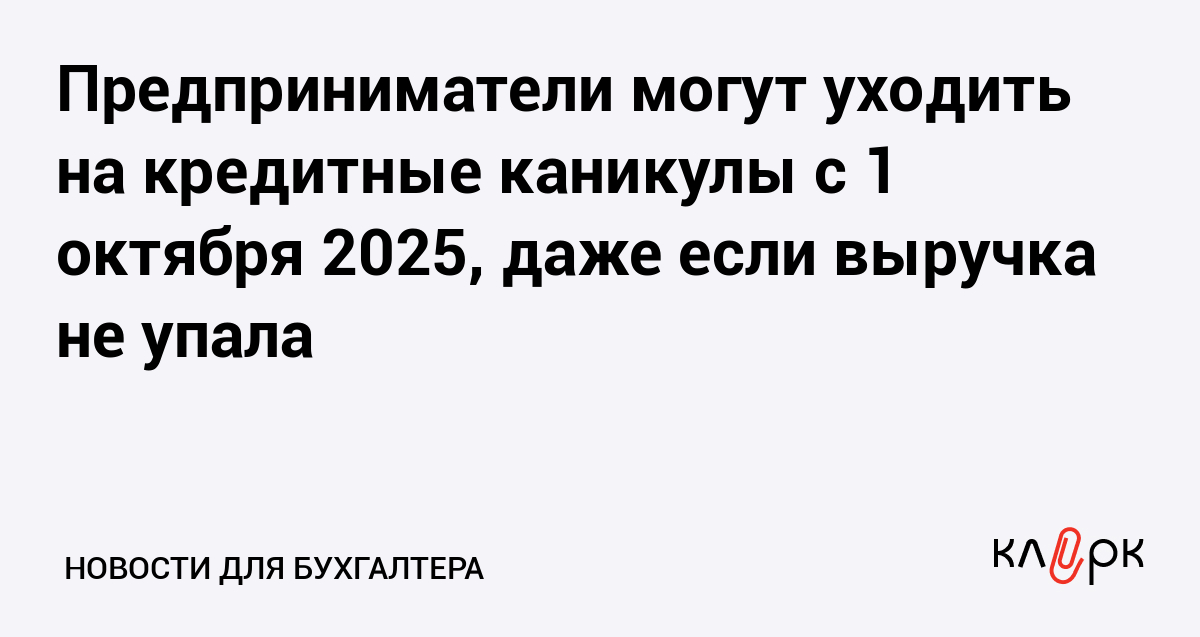 Предприниматели могут уходить на кредитные каникулы с 1 октября 2025, даже если выручка не упала