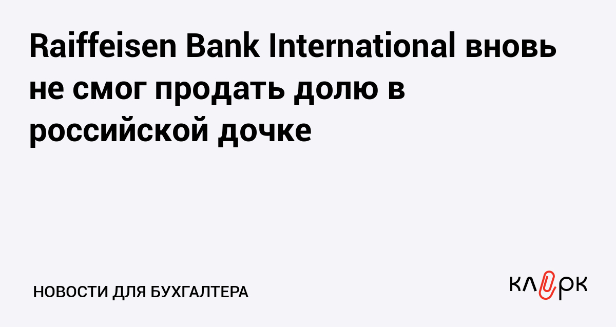 Raiffeisen Bank International вновь не смог продать долю в российской дочке