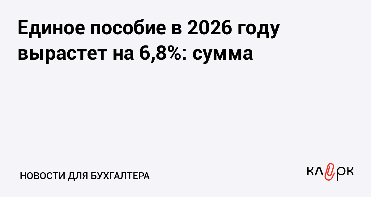 Единое пособие в 2026 году вырастет на 6,8%: сумма