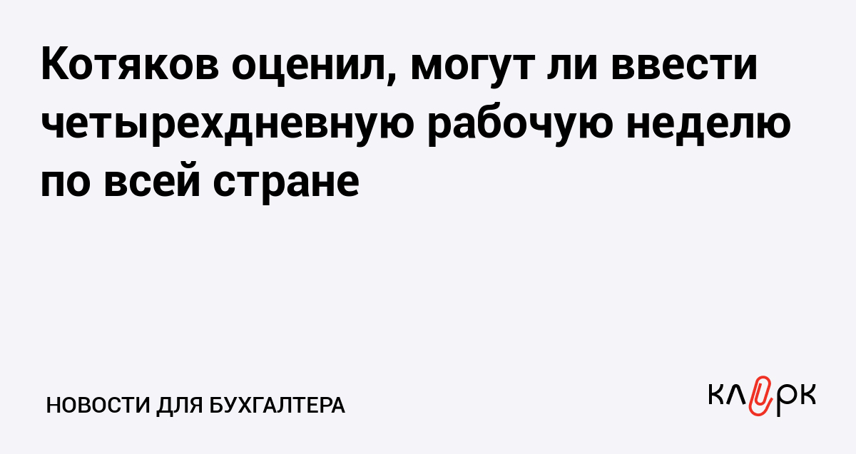 Котяков считает, что в российской практике четырехдневная и трехдневная рабочие недели — это вынужденная мера конкретного работодателя. Такое решение может быть связано с трудностями по сбыту продукции или перенастройкой технологического цикла.