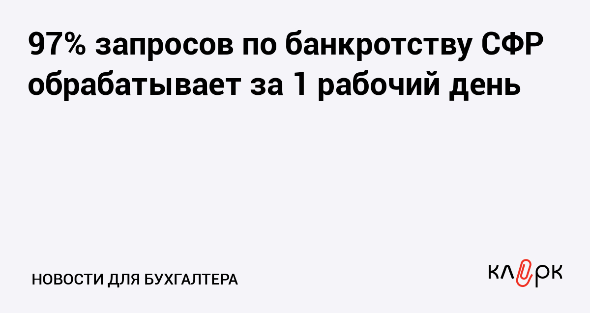 97% запросов по банкротству СФР обрабатывает за 1 рабочий день