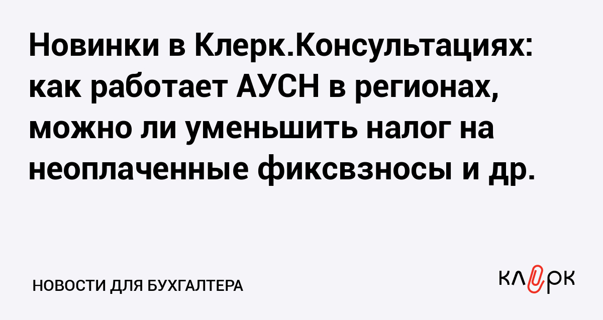 Новинки в Клерк.Консультациях: как работает АУСН в регионах, можно ли уменьшить налог на неоплаченные фиксвзносы и др.