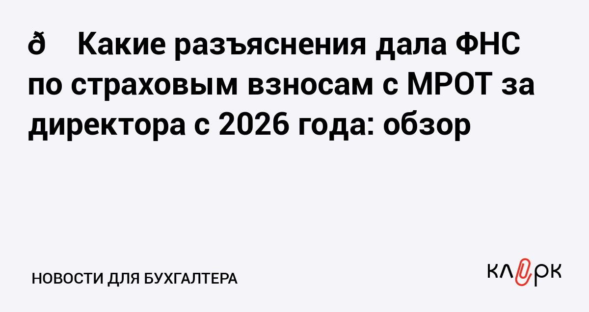 👔 Какие разъяснения дала ФНС по страховым взносам с МРОТ за директора с 2026 года: обзор
