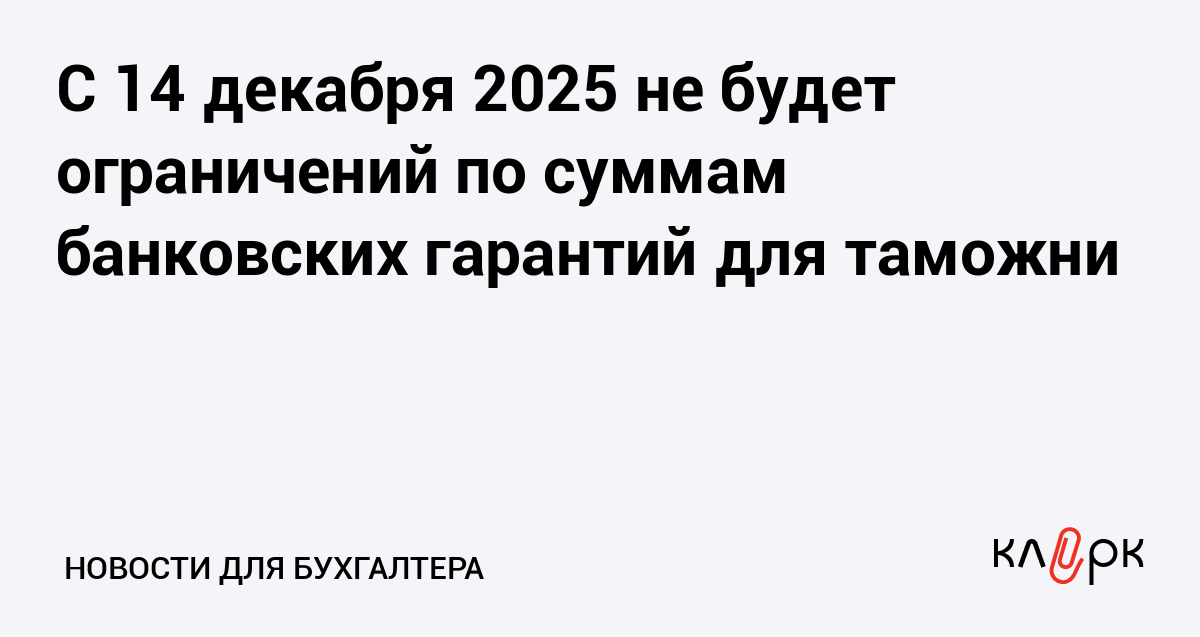 С 14 декабря 2025 не будет ограничений по суммам банковских гарантий для таможни