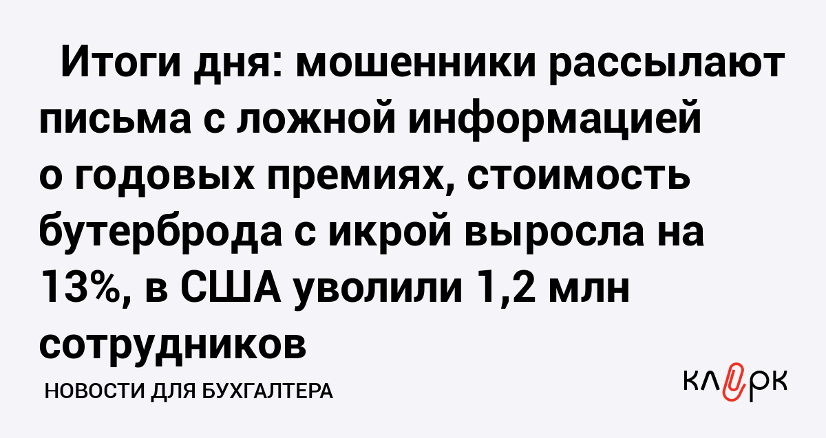 ⚡️ Итоги дня: мошенники рассылают письма с ложной информацией о годовых премиях, стоимость бутерброда с икрой выросла на 13%, в США уволили 1,2 млн сотрудников
