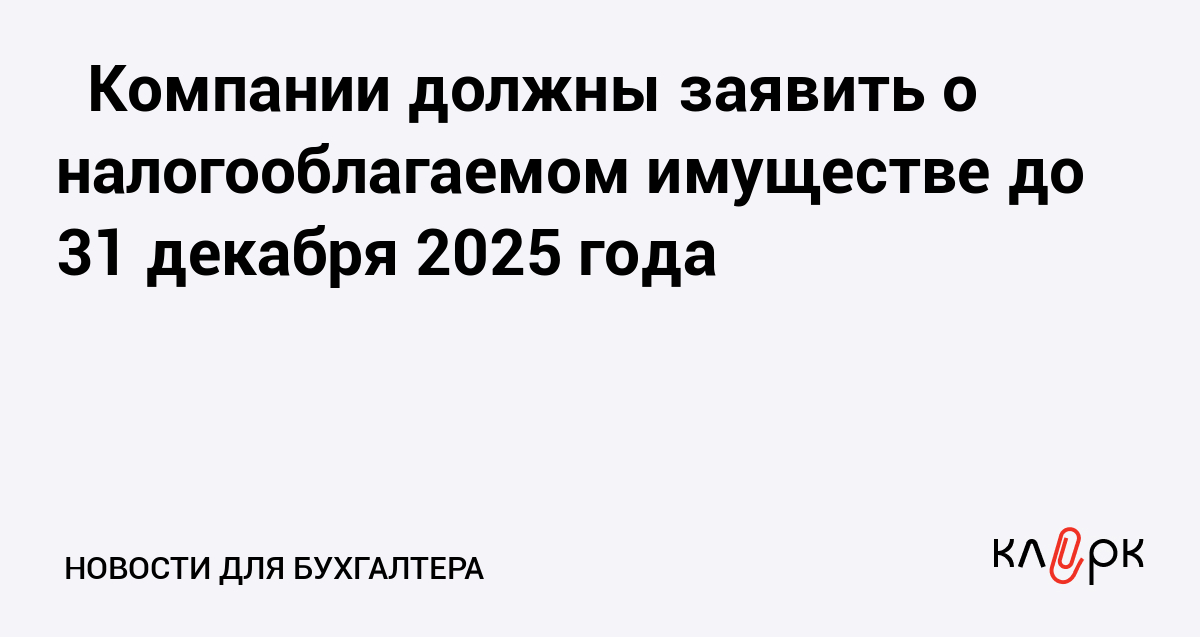 ⏳ Компании должны заявить о налогооблагаемом имуществе до 31 декабря 2025 года