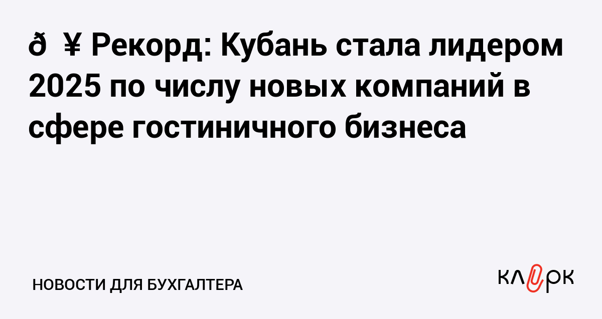 💥 Рекорд: Кубань стала лидером 2025 по числу новых компаний в сфере гостиничного бизнеса