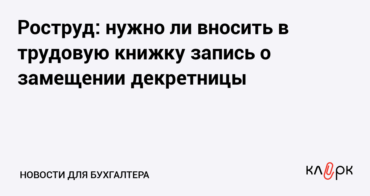 Роструд: нужно ли вносить в трудовую книжку запись о замещении декретницы