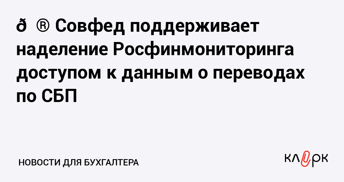 😮 Совфед поддерживает наделение Росфинмониторинга доступом к данным о переводах по СБП