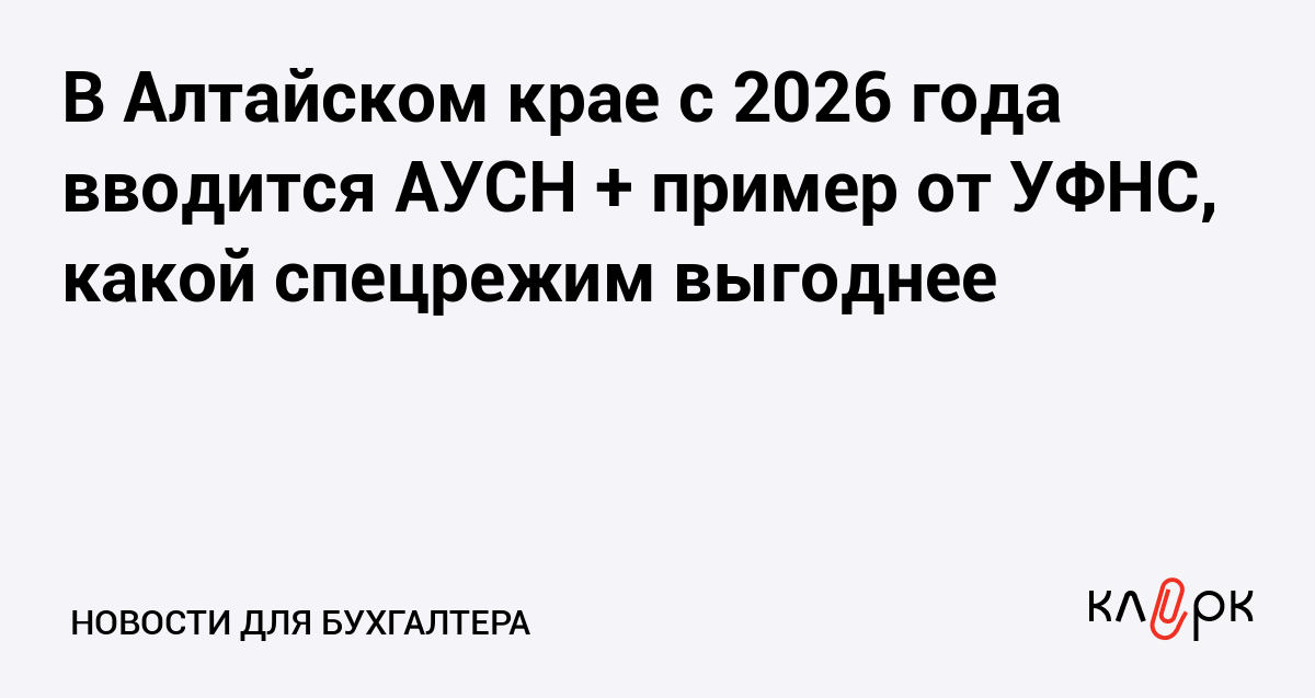В Алтайском крае с 2026 года вводится АУСН + пример от УФНС, какой спецрежим выгоднее
