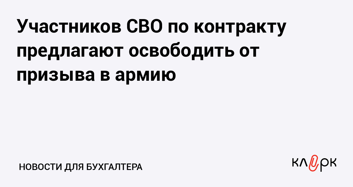 Изменения предлагается внести в ст. 23 закона о военной службе. Сейчас от призыва освобождаются граждане, находившиеся в добровольческих формированиях. Такое же право хотят дать участникам СВО, заключившим контракты с организациями, содействующим ВС РФ, в зоне СВО.