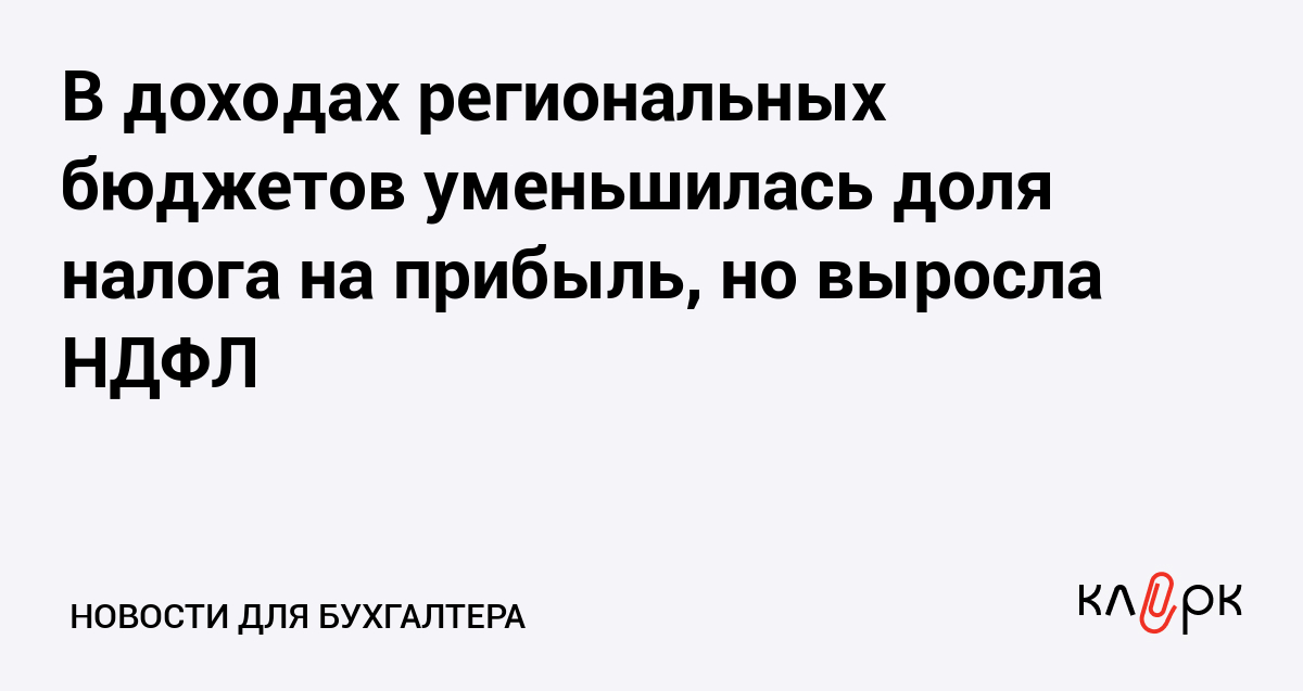 В доходах региональных бюджетов уменьшилась доля налога на прибыль, но выросла НДФЛ
