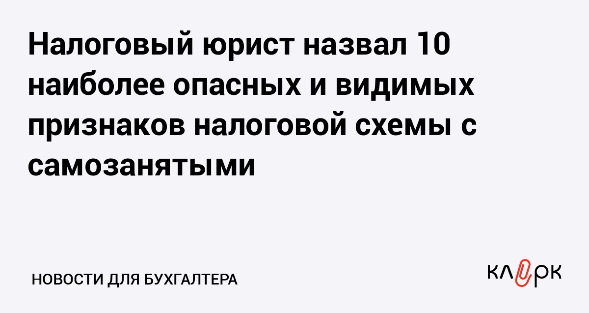 Налоговый юрист назвал 10 наиболее опасных и видимых признаков налоговой схемы с самозанятыми