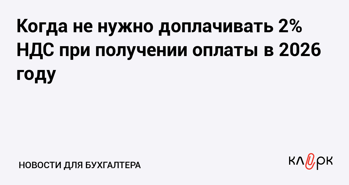 Когда не нужно доплачивать 2% НДС при получении оплаты в 2026 году
