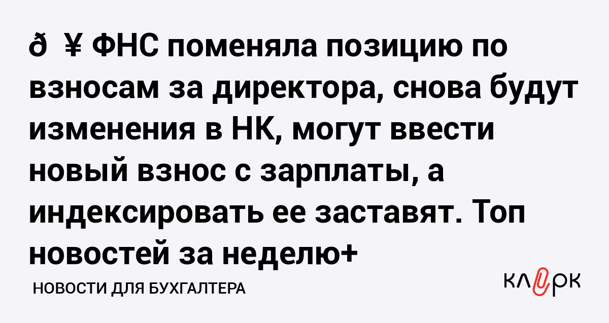 💥 ФНС поменяла позицию по взносам за директора, снова будут изменения в НК, могут ввести новый взнос с зарплаты, а индексировать ее заставят. Топ новостей за неделю+