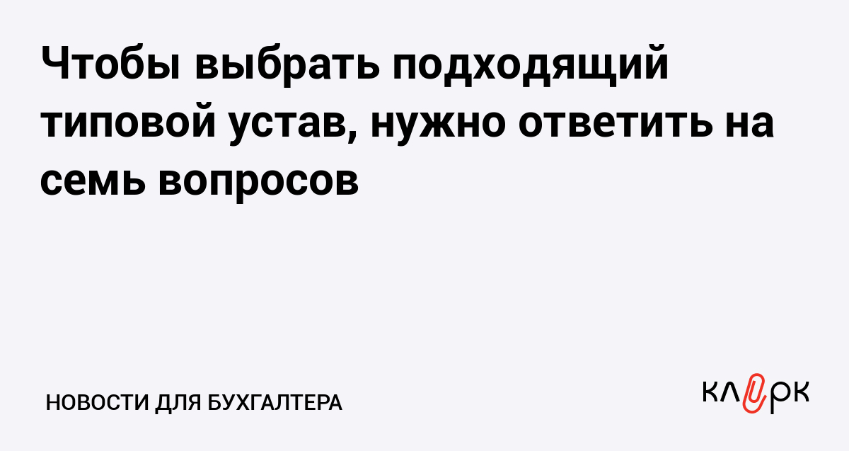 Чтобы выбрать подходящий типовой устав, нужно ответить на семь вопросов