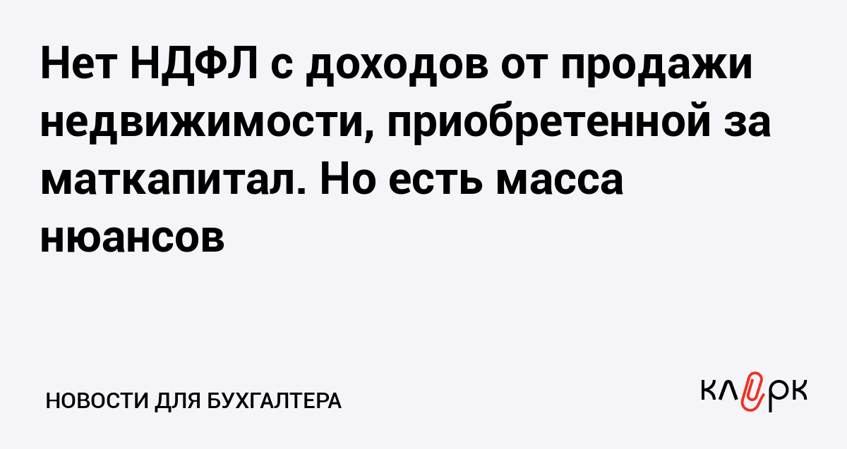 Нет НДФЛ с доходов от продажи недвижимости, приобретенной за маткапитал. Но есть масса нюансов