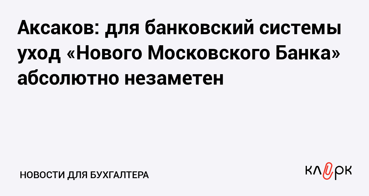 Аксаков: для банковский системы уход «Нового Московского Банка» абсолютно незаметен