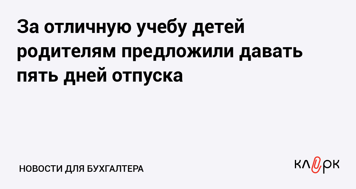 За отличную учебу детей родителям предложили давать пять дней отпуска