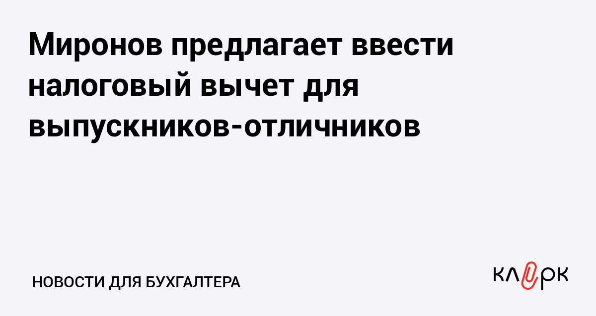 Миронов предлагает ввести налоговый вычет для выпускников-отличников