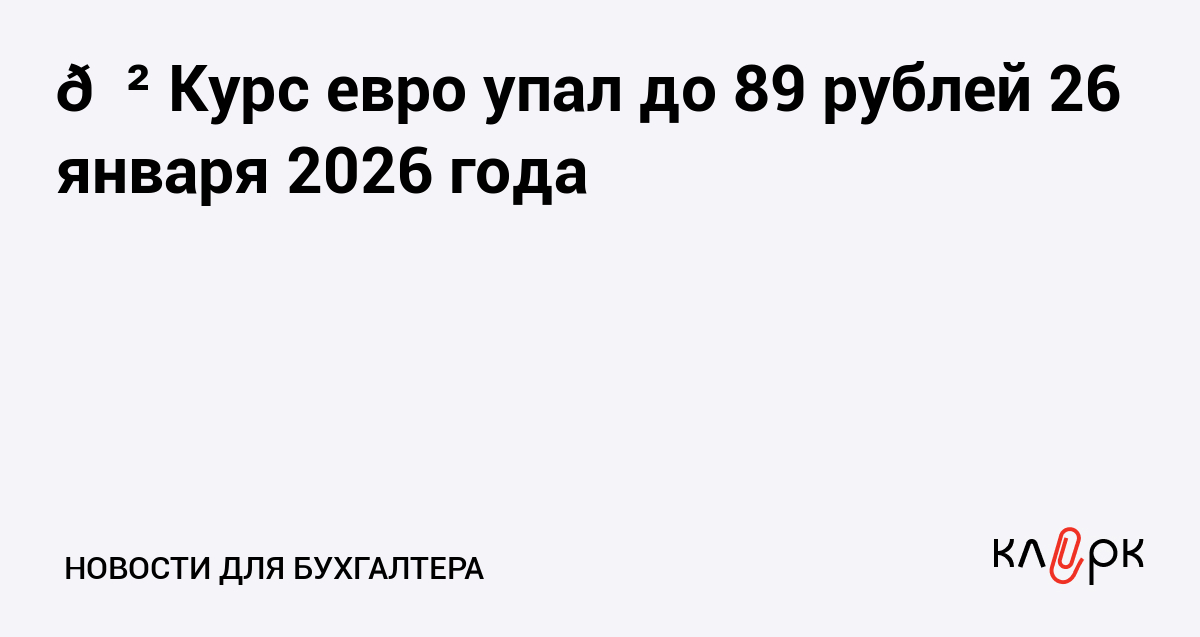 💲 Курс евро упал до 89 рублей 26 января 2026 года