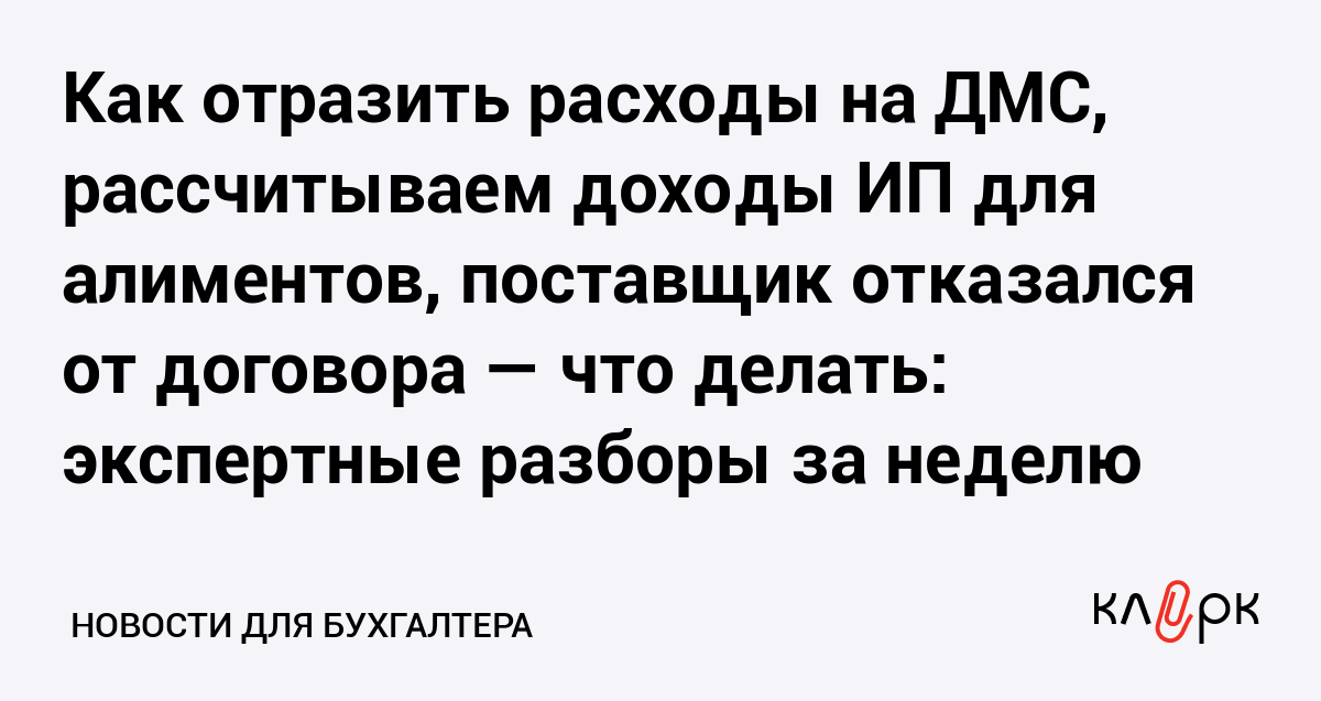 Как отразить расходы на ДМС, рассчитываем доходы ИП для алиментов, поставщик отказался от договора — что делать: экспертные разборы за неделю