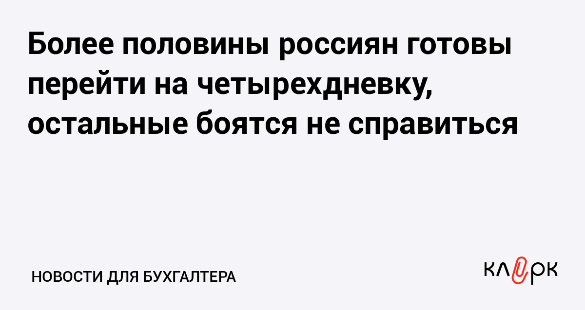 Более половины россиян готовы перейти на четырехдневку, остальные боятся не справиться