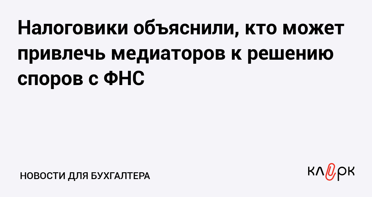 Налоговики объяснили, кто может привлечь медиаторов к решению споров с ФНС