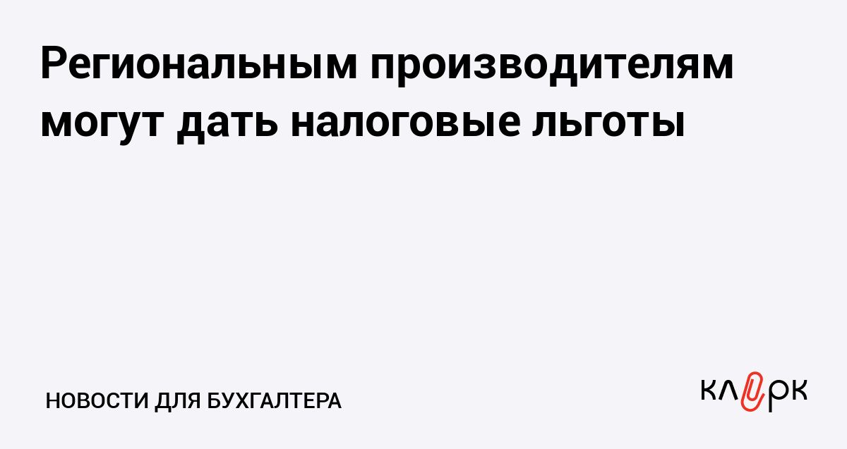 Региональным производителям могут дать налоговые льготы