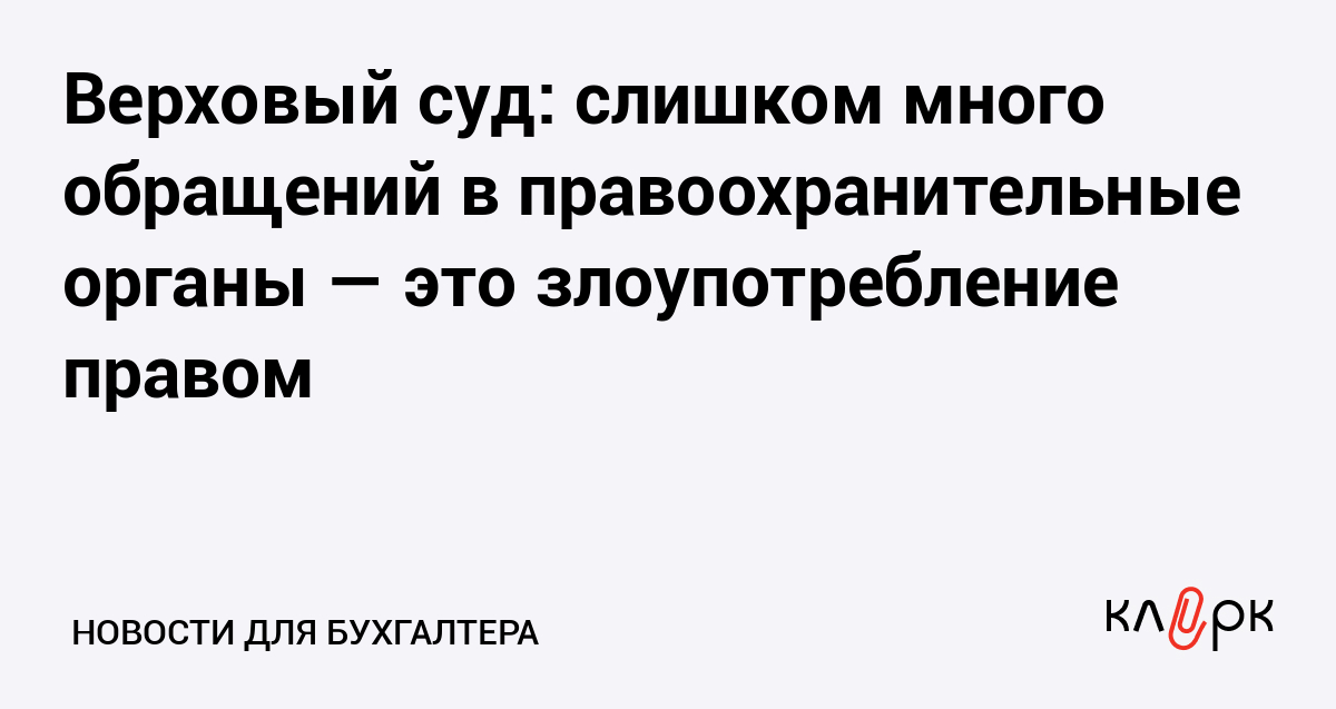 ВС РФ решил, что многократные обращения в правоохранительные органы можно рассматривать как злоупотребление правом.